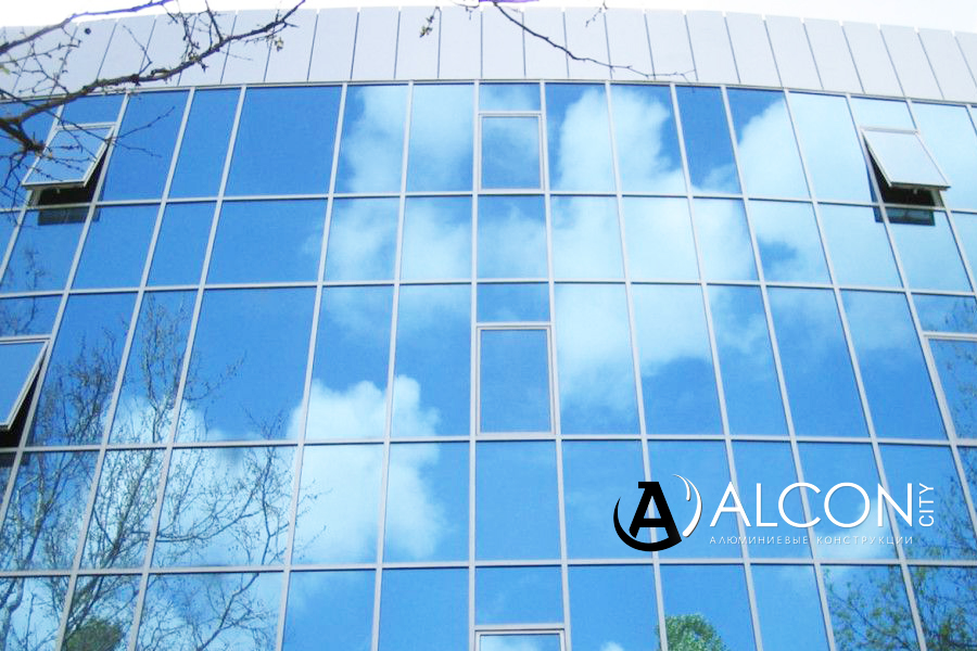 - Структурное остекление фасадов — позволяет скрыть элементы алюминиевых профилей с внешней стороны.